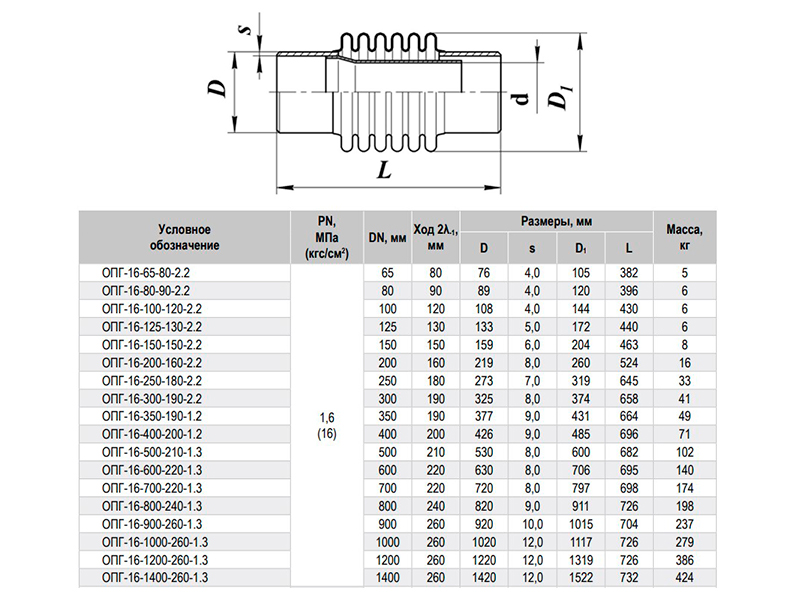 Компенсатор ОПГ-16-80-90-2.2 Ду 80 Ру 16 сильфонный осевой