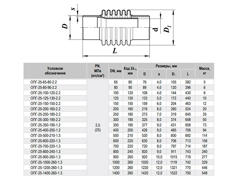 Компенсатор ОПГ-25-80-90-2.2 Ду 80 Ру 25 сильфонный осевой