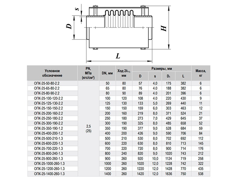Компенсатор ОПК-25-50-80-2.2 Ду 50 Ру 25 сильфонный осевой