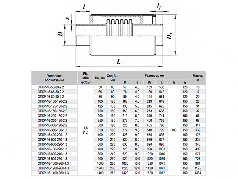 Компенсатор ОПКР-16-50-80-2.2 Ду 50 Ру 16 сильфонный осевой