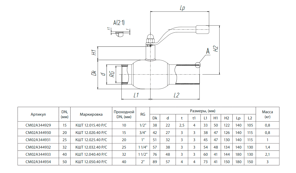 Кран шаровой БИВАЛ КШТ 12 DN 15 PN 40 Р/С