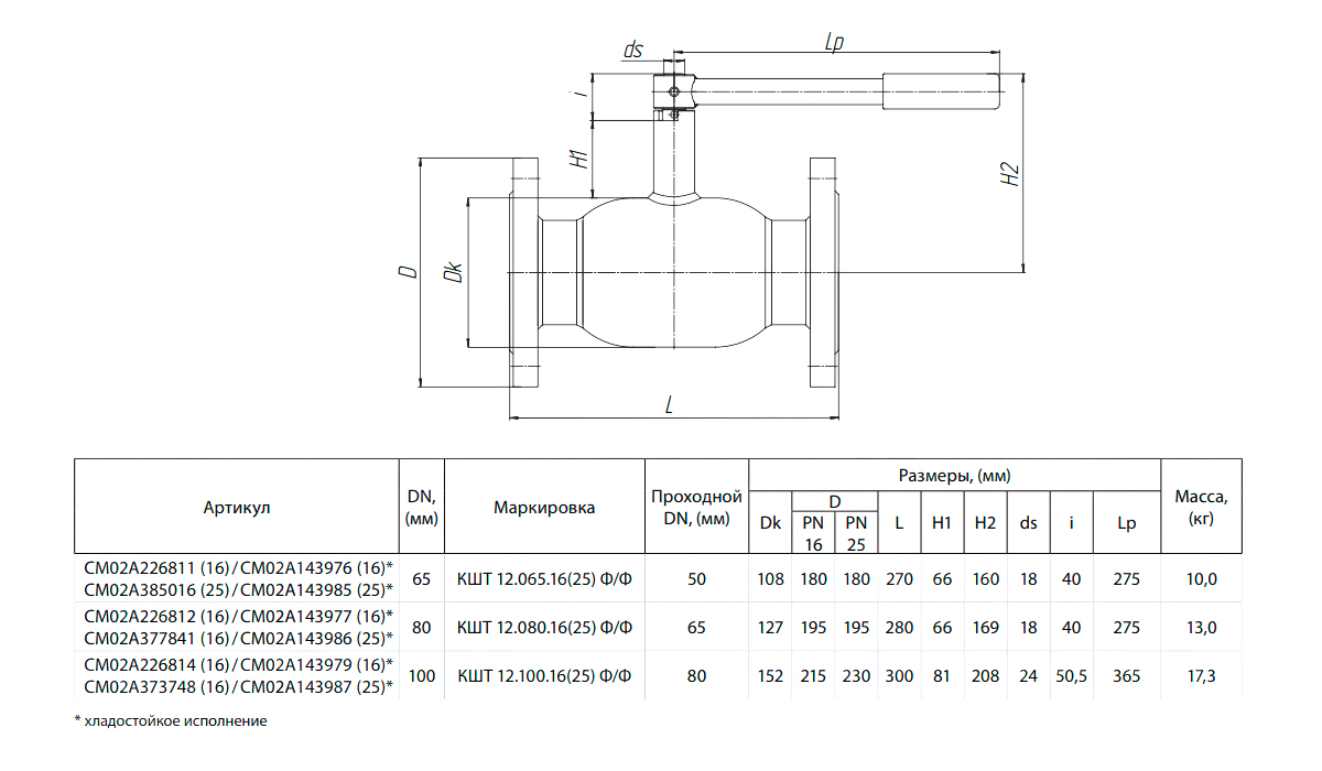 Кран шаровой БИВАЛ КШТ 12 DN 65 PN 16 Ф/Ф