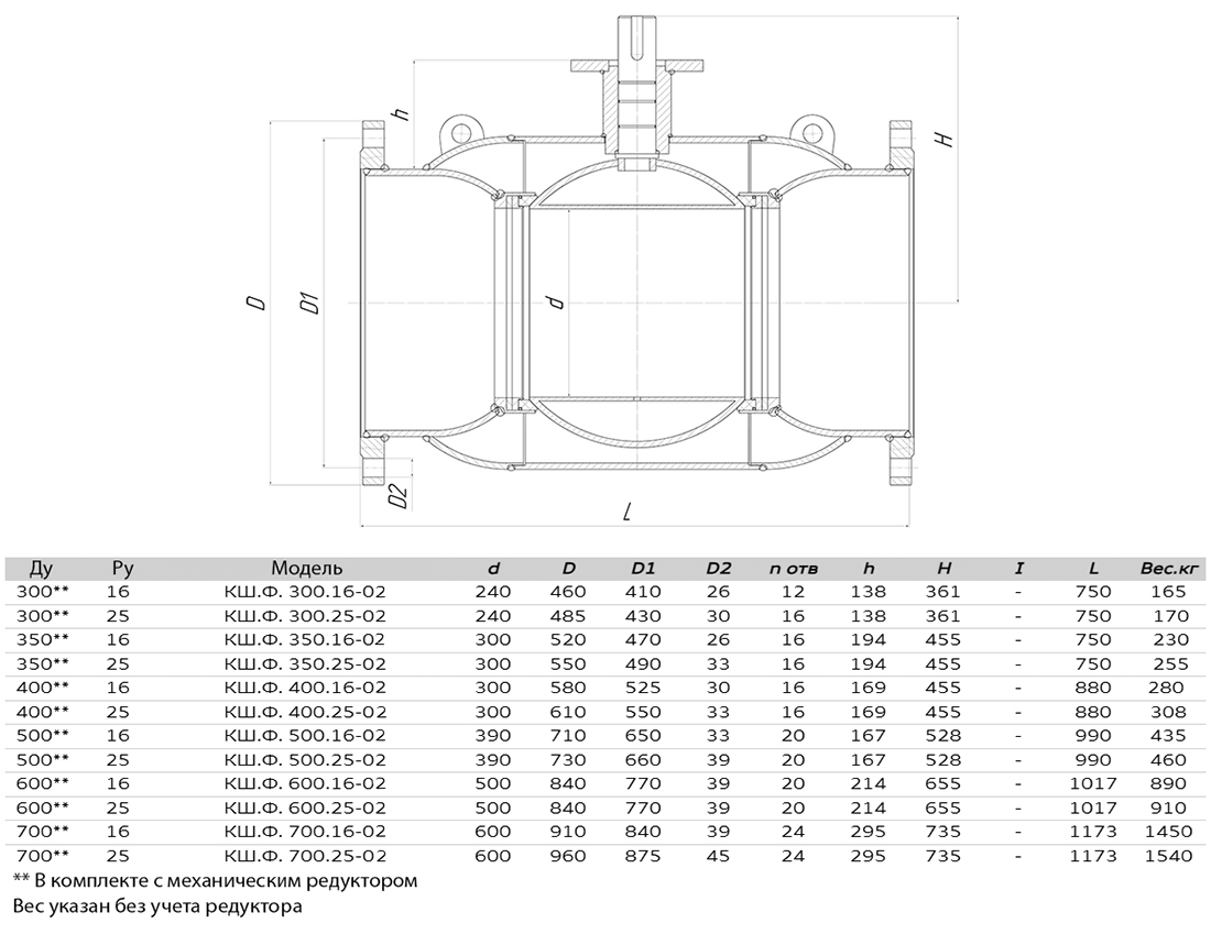 Кран шаровой ALSO КШ.Ф.500.25-02 Ду 500 Ру 25 с редуктором стандартнопроходный фланцевый, корпус - 09Г2С