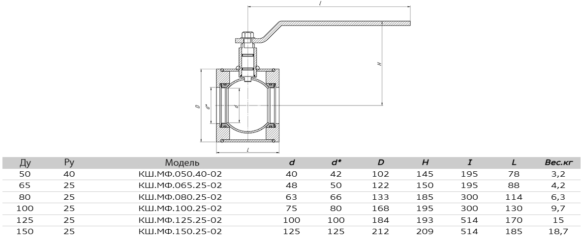 Кран шаровой ALSO КШ.МФ.050.40-02 Ду 50 Ру 40 стандартнопроходный межфланцевый, корпус - 09Г2С