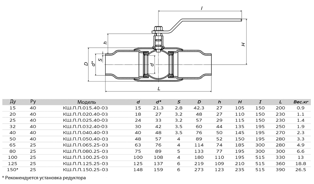 Кран шаровой нержавеющий ALSO КШ.П.П.150.25-03 Ду 150 Ру 25 полнопроходный под приварку, корпус - 12Х18Н10Т