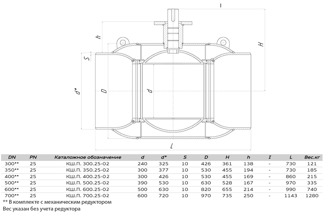 Кран шаровой ALSO КШ.П.600.25-02 Ду 600 Ру 25 с редуктором стандартнопроходный под приварку, корпус - 09Г2С