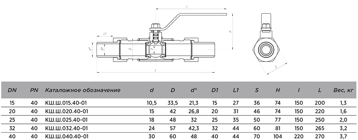 Кран шаровой ALSO КШ.Ш.015.40-01 Ду 15 Ру 40 стандартнопроходный штуцерный
