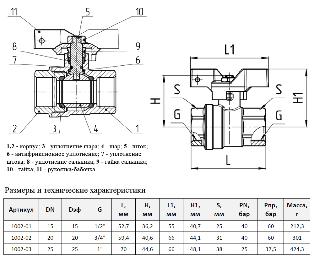 Тип резьбыВнутренняя-внутренняя