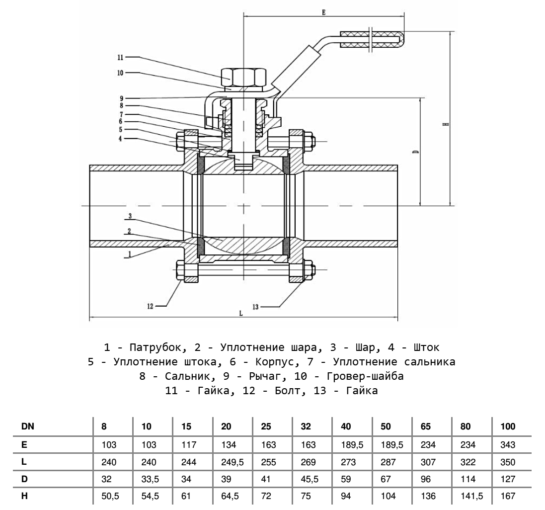 Кран шаровой Benarmo 4210H DN 20 PN 63 нерж SS304 трёхсоставной полнопроходный под приварку