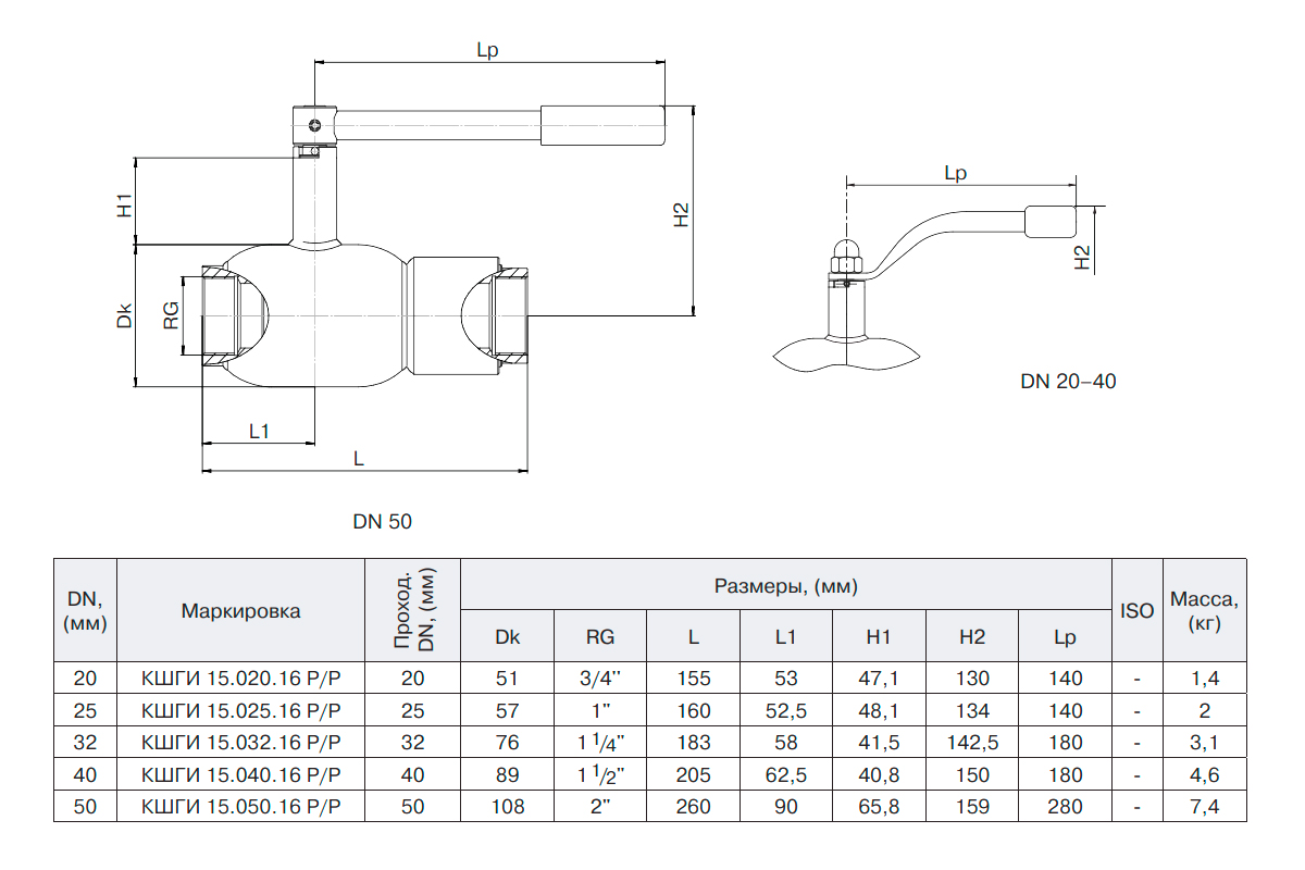 Кран шаровой БИВАЛ КШГИ 15 DN 20 PN 16 Р/Р