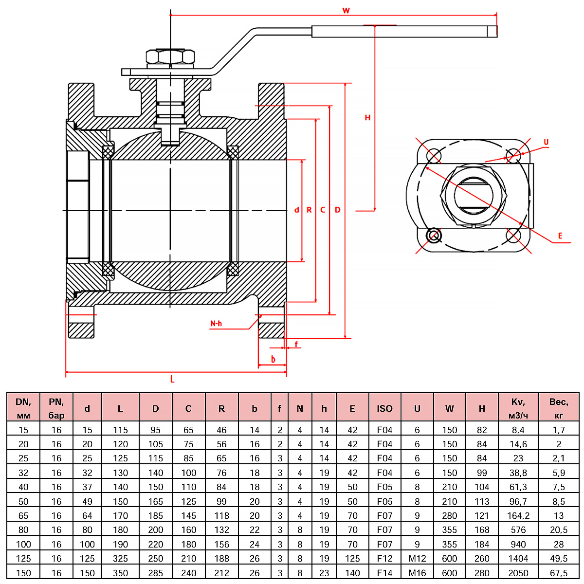 Кран шаровой чугунный РАШВОРК 707 Ду20 Ру16 фланцевый полнопроходный