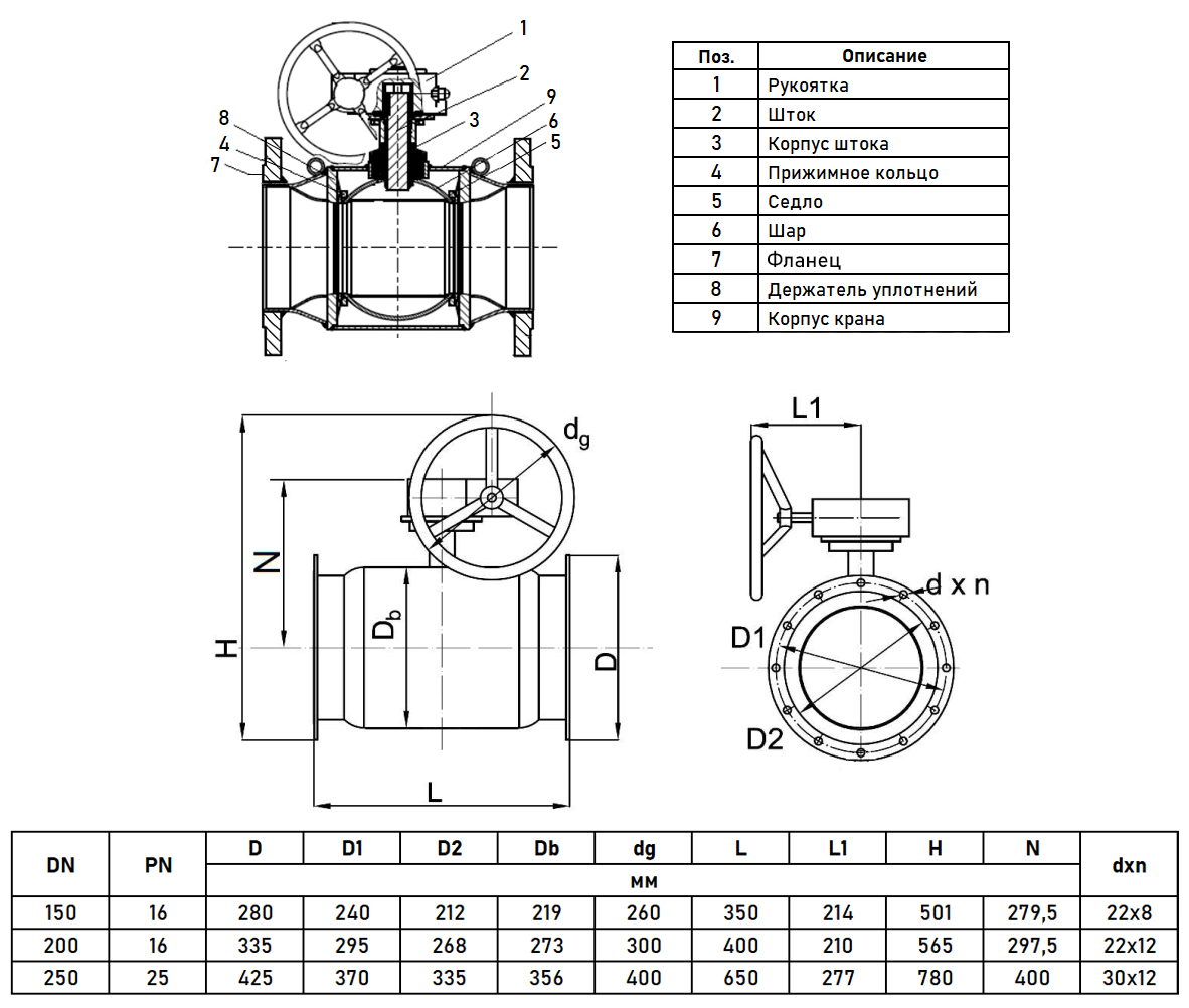 Кран шаровой Danfoss JiP Premium FF WG DN 250 PN 25 стальной стандартнопроходный фланцевый с ручным редуктором