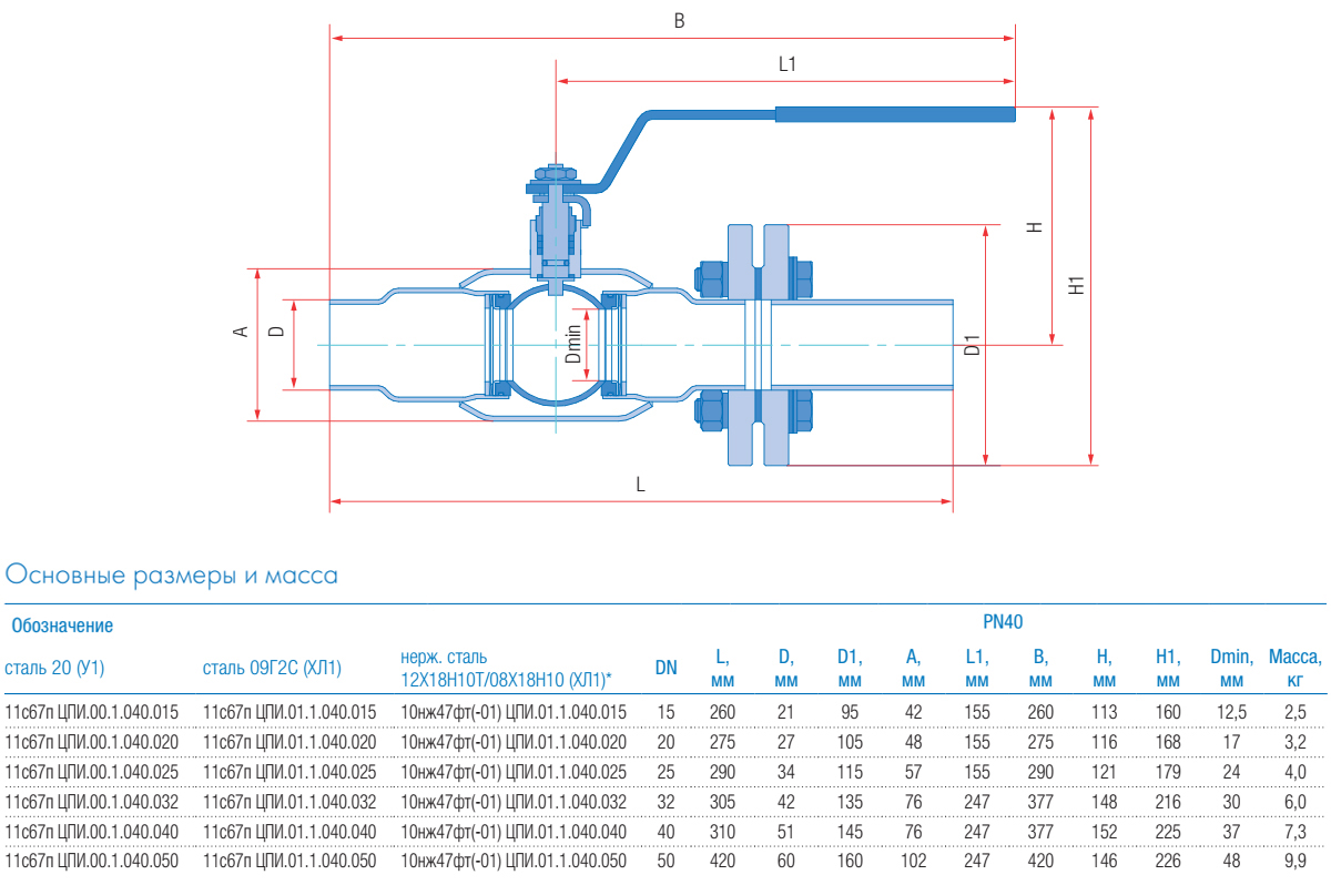 Кран шаровой изолирующий Маршал 11с67п ЦПИ.00.1 DN 15 PN 40 полнопроходной под приварку