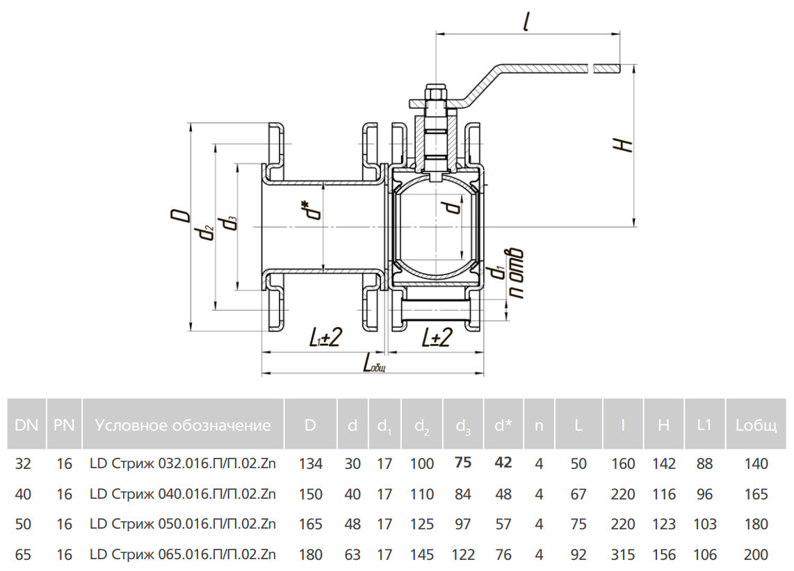 Кран шаровой LD Стриж 050.016.П/П.02.Zn Ду 50 Ру 16 стальной полнопроходный под задвижку