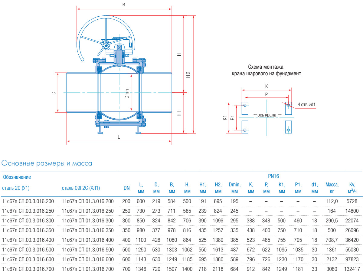 Кран шаровой Маршал 11с67п GAS PRO СП.00.3 DN 700 PN 16 полнопроходной под приварку
