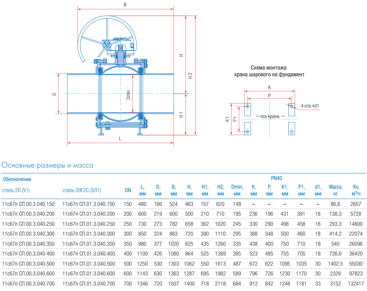 Кран шаровой Маршал 11с67п СП.00.3 DN 700 PN 40 полнопроходной под приварку