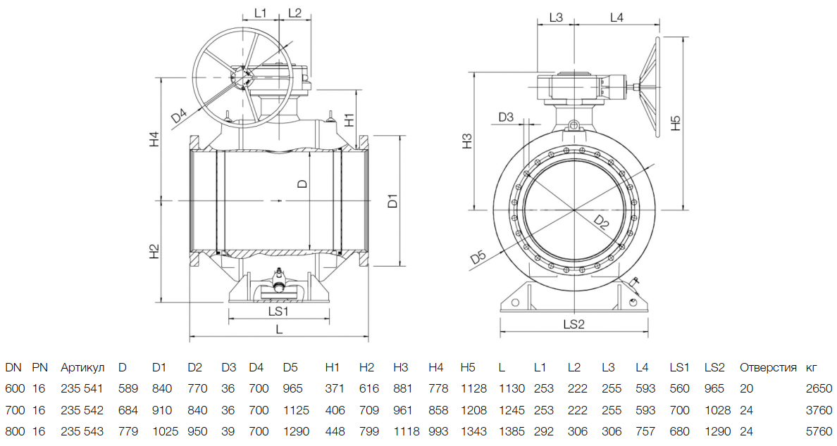 Кран шаровой NAVAL 235543 DN 800 PN 16 стальной полнопроходный фланцевый с редуктором