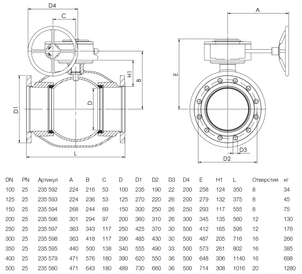 Кран шаровой NAVAL 235597 DN 250 PN 25 стальной полнопроходный фланцевый с редуктором