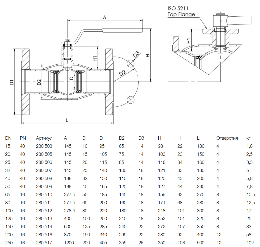 Кран шаровой NAVAL 280516 DN 200 PN 16 стальной стандартнопроходный фланцевый для газа