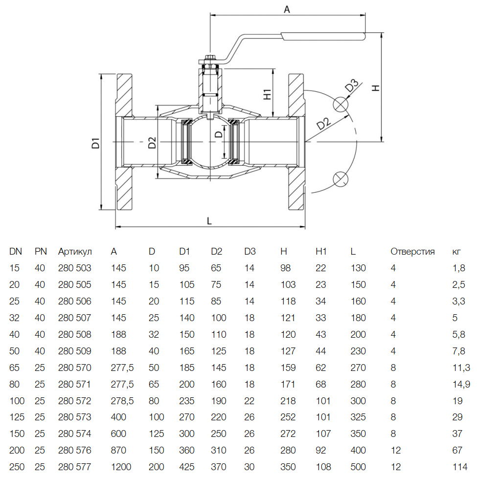 Кран шаровой NAVAL 280570 DN 65 PN 25 стальной стандартнопроходный фланцевый для газа
