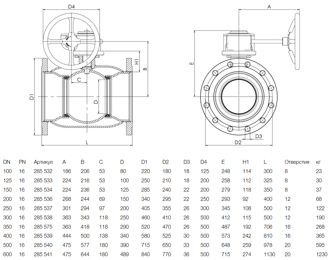 Кран шаровой NAVAL 285538 DN 300 PN 16 стальной стандартнопроходный фланцевый с редуктором