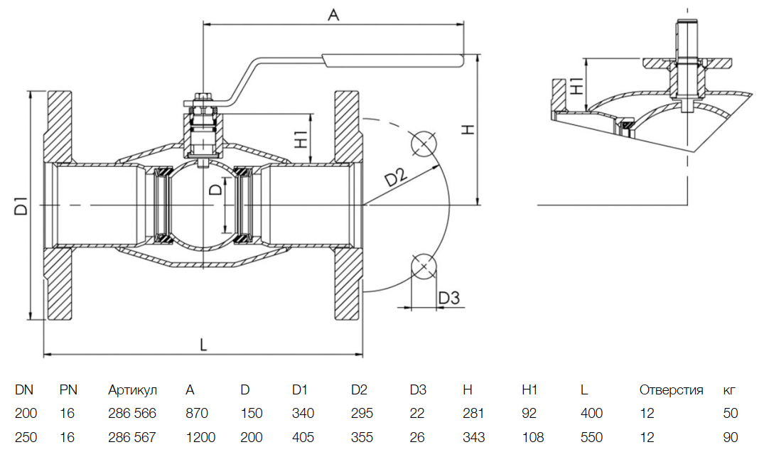 Кран шаровой NAVAL 286567 DN 250 PN 16 нержавеющий стандартнопроходный фланцевый