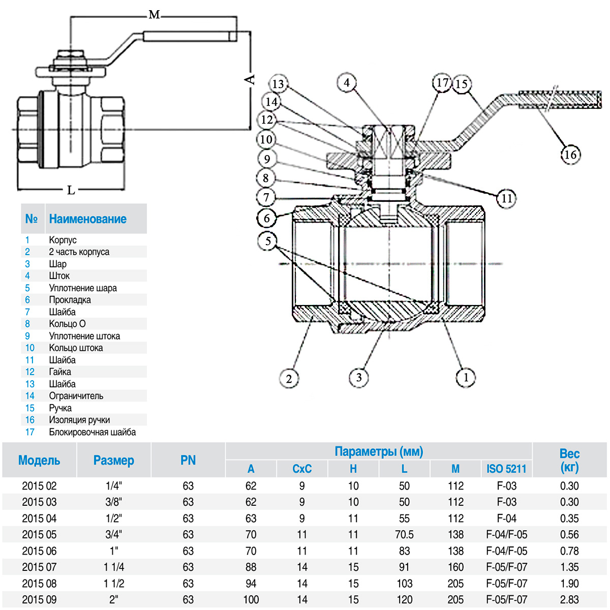 Кран шаровой нержавеющий двухсоставной GENEBRE 2015 Ду8 Ру63 полнопроходной резьбовой ВР/ВР с ISO-фланцем