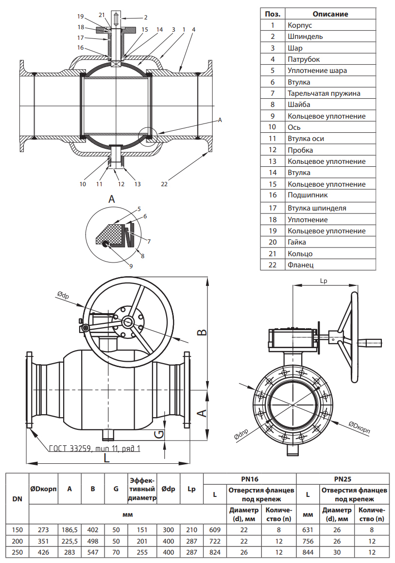 Кран шаровой Ридан RJiP Premium FB/FF/WG DN 200 PN 25 стальной полнопроходный фланцевый с ручным редуктором