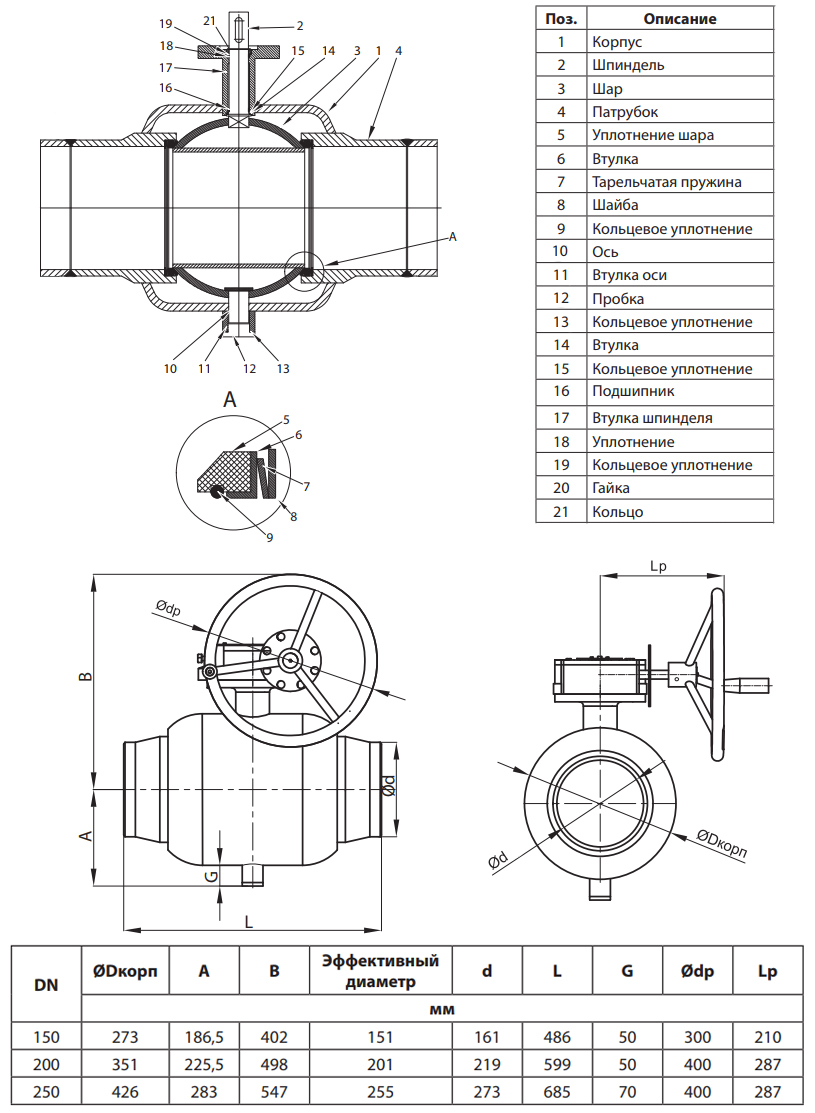 Кран шаровой Ридан RJiP Premium FB/WW/WG DN 150 PN 25 стальной полнопроходный под приварку с ручным редуктором