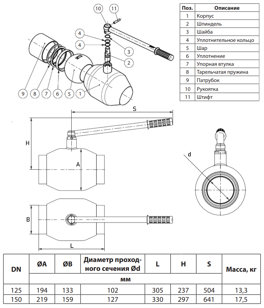 Кран шаровой Ридан RJiP Premium WW DN 150 PN 25 стальной стандартнопроходный под приварку