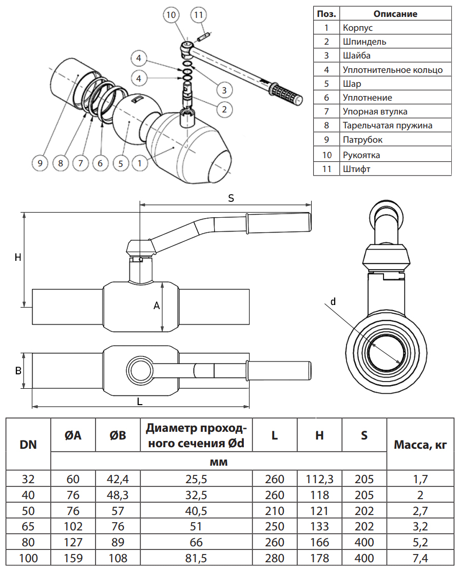 Кран шаровой Ридан RJiP Premium WW DN 32 PN 40 стальной стандартнопроходный под приварку