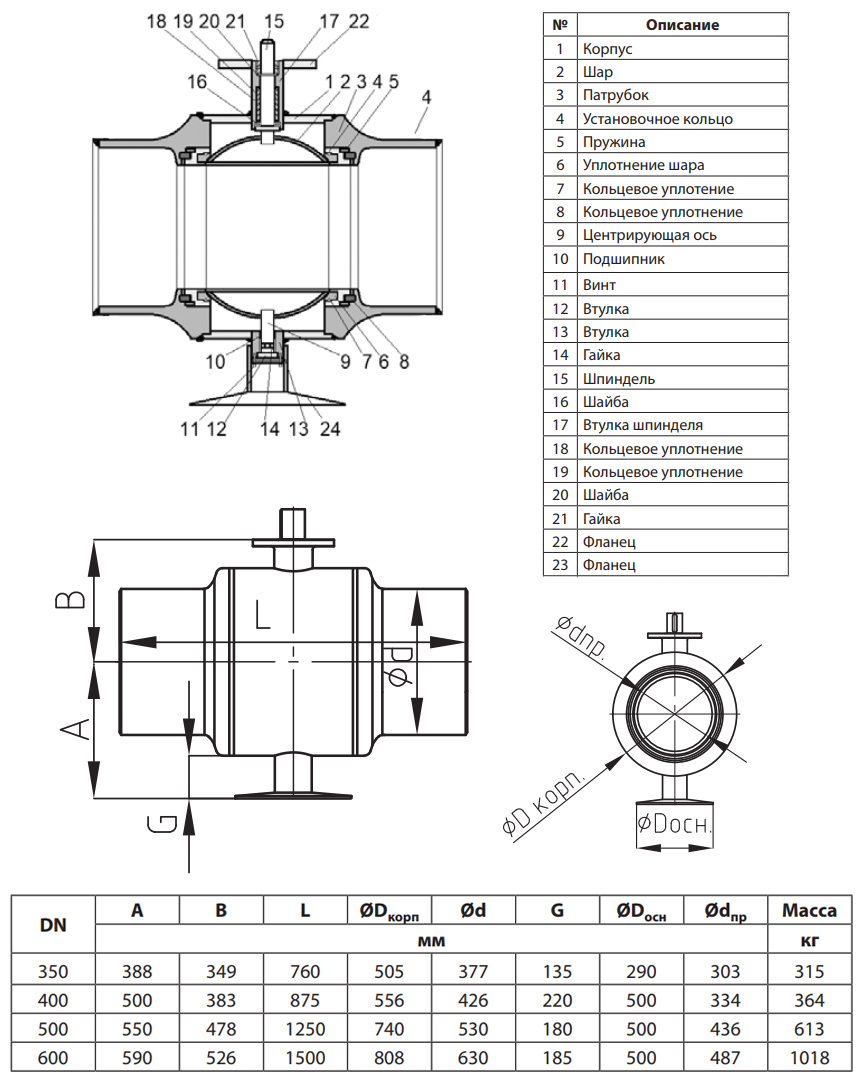 Кран шаровой Ридан RJiP Premium WW GF DN 600 PN 25 стальной стандартнопроходный под приварку с фланцем под привод