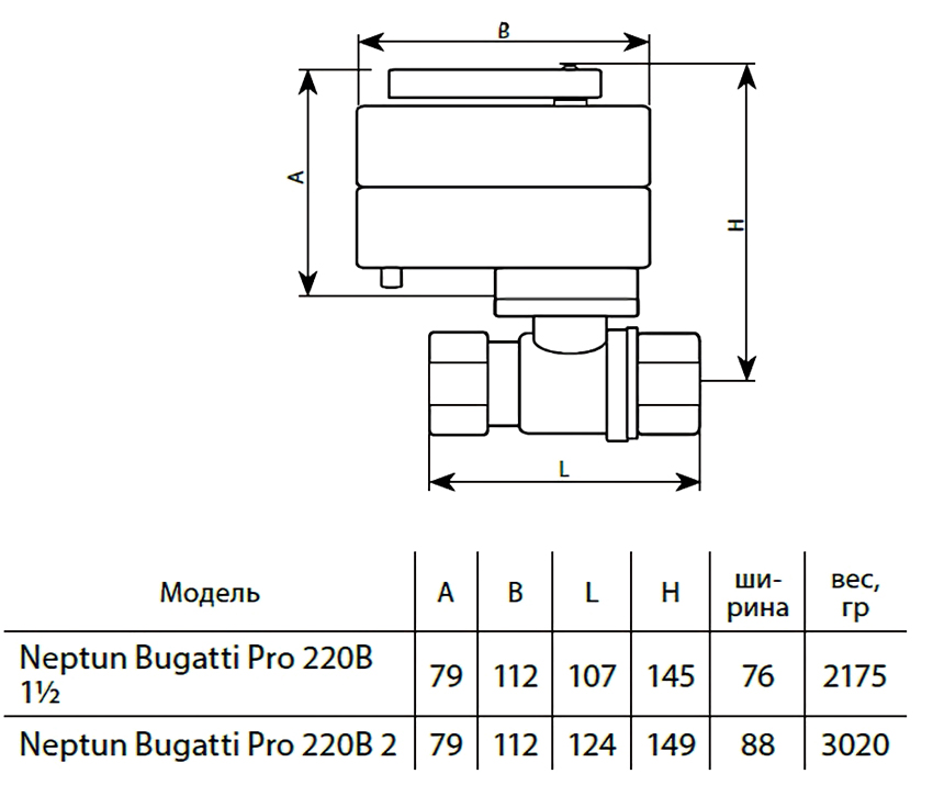Кран шаровой с электроприводом Нептун Bugatti Pro 220В 2'' латунный