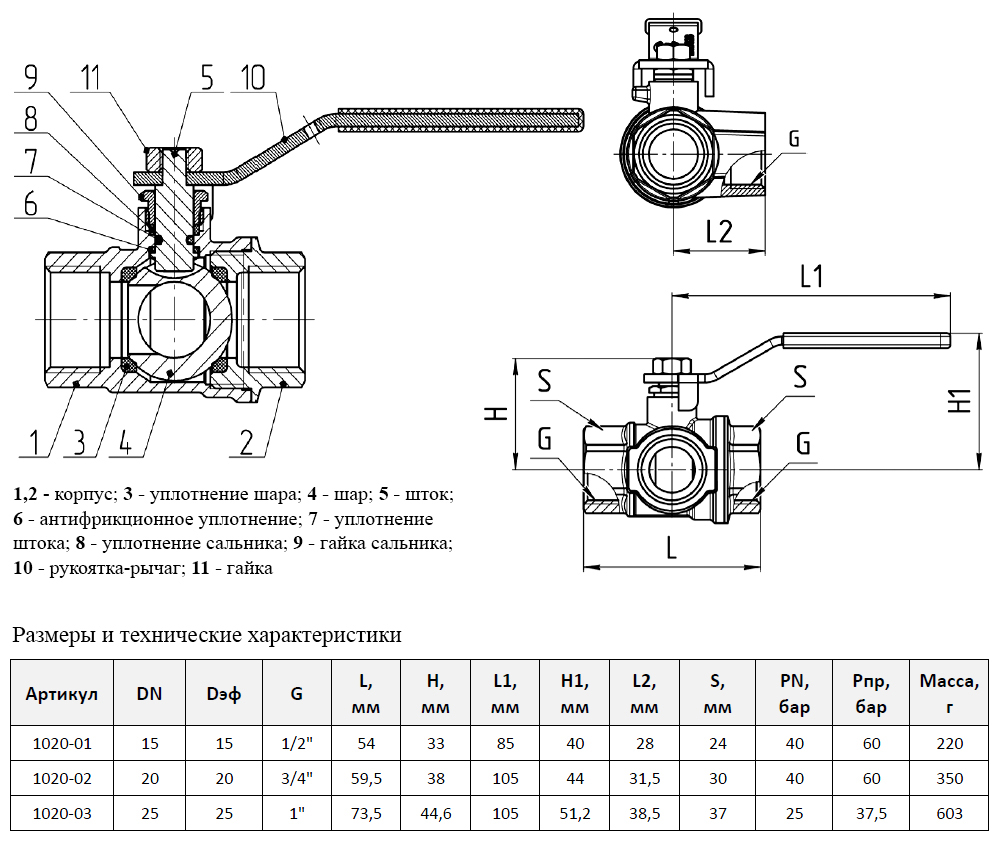 Тип резьбыВнутренняя-внутренняя-внутренняя