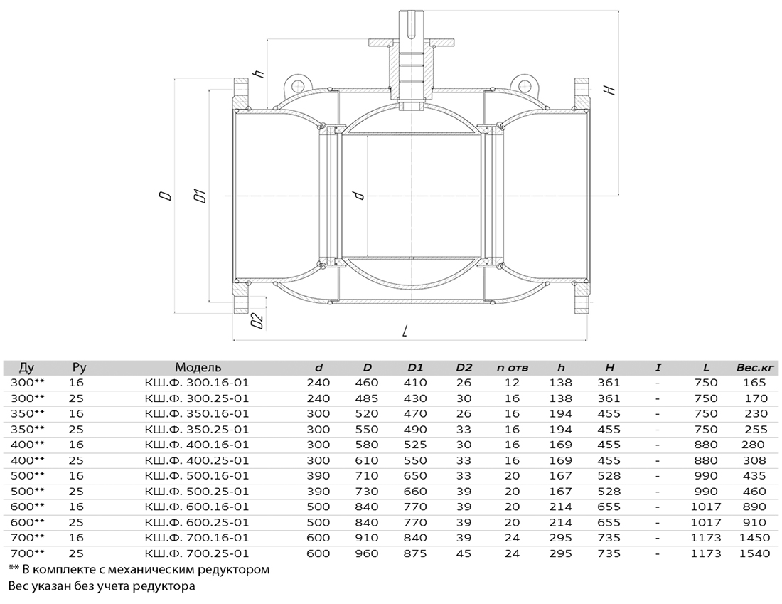 Кран шаровой ALSO КШ.Ф.500.25-01 Ду 500 Ру 25 с редуктором стандартнопроходный фланцевый