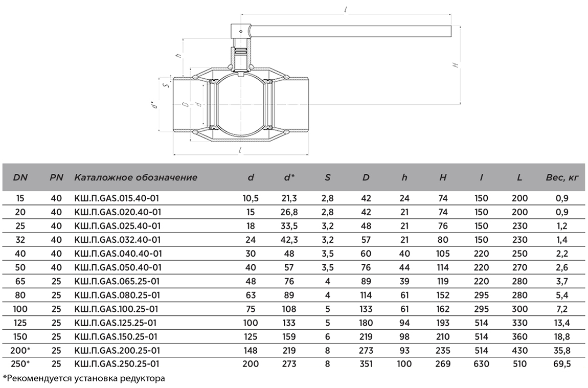 Кран шаровой газовый ALSO КШ.П.GAS.080.25-01 Ду 80 Ру 25 стандартнопроходный под приварку
