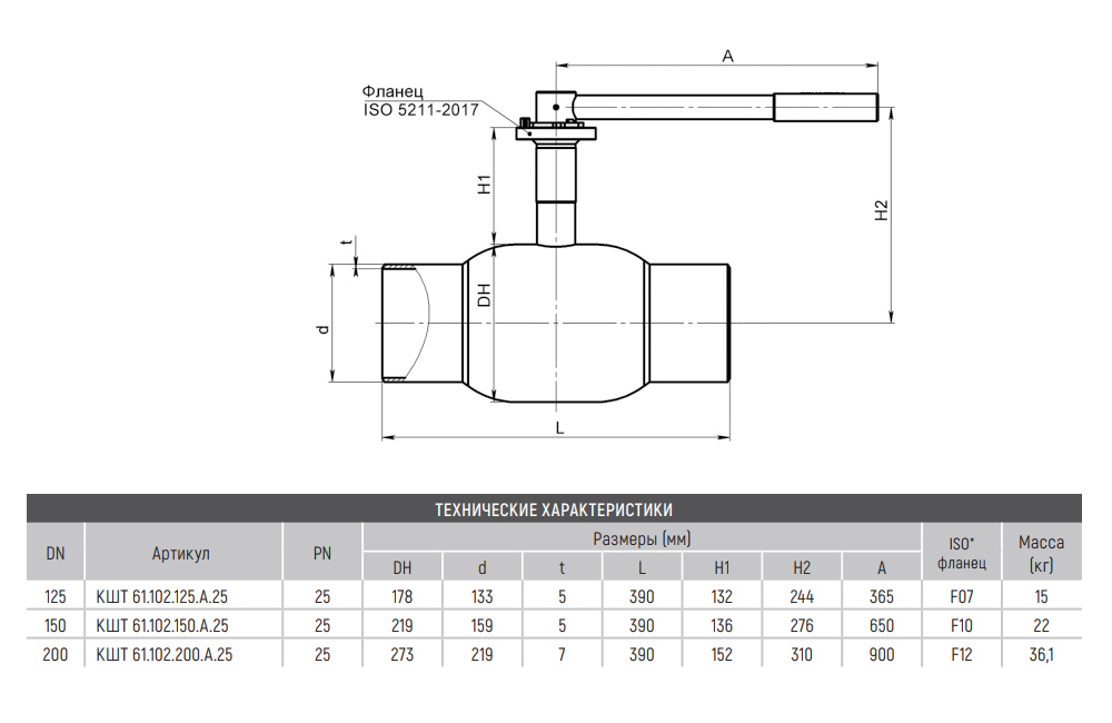 Кран BROEN BALLOMAX КШТ 61.102.125.А.25 DN 125 PN 25 стандартнопроходный стальной шаровый