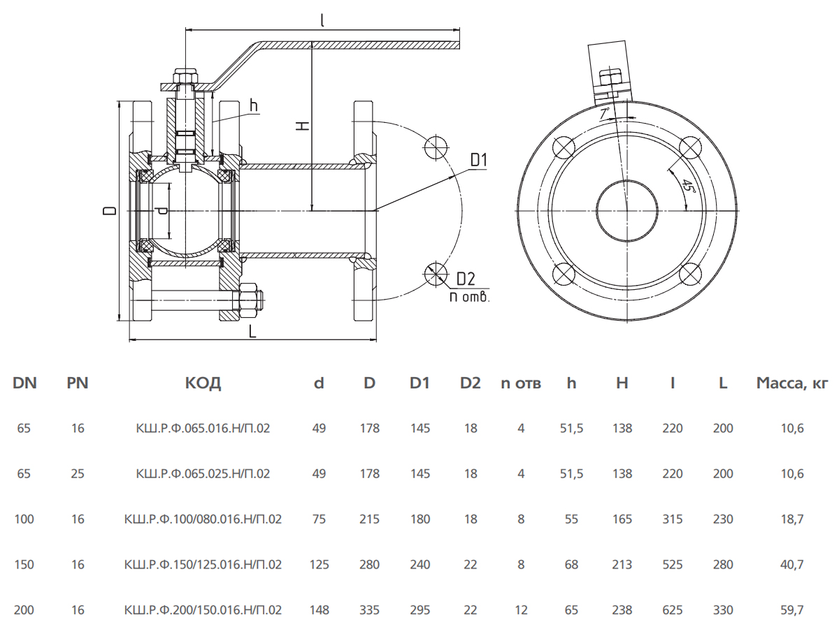 Кран шаровой LD 11С67П КШ.Р.Ф.065.016.Н/П.02 Ду 65 Ру 16 стальной неполнопроходный фланцевый