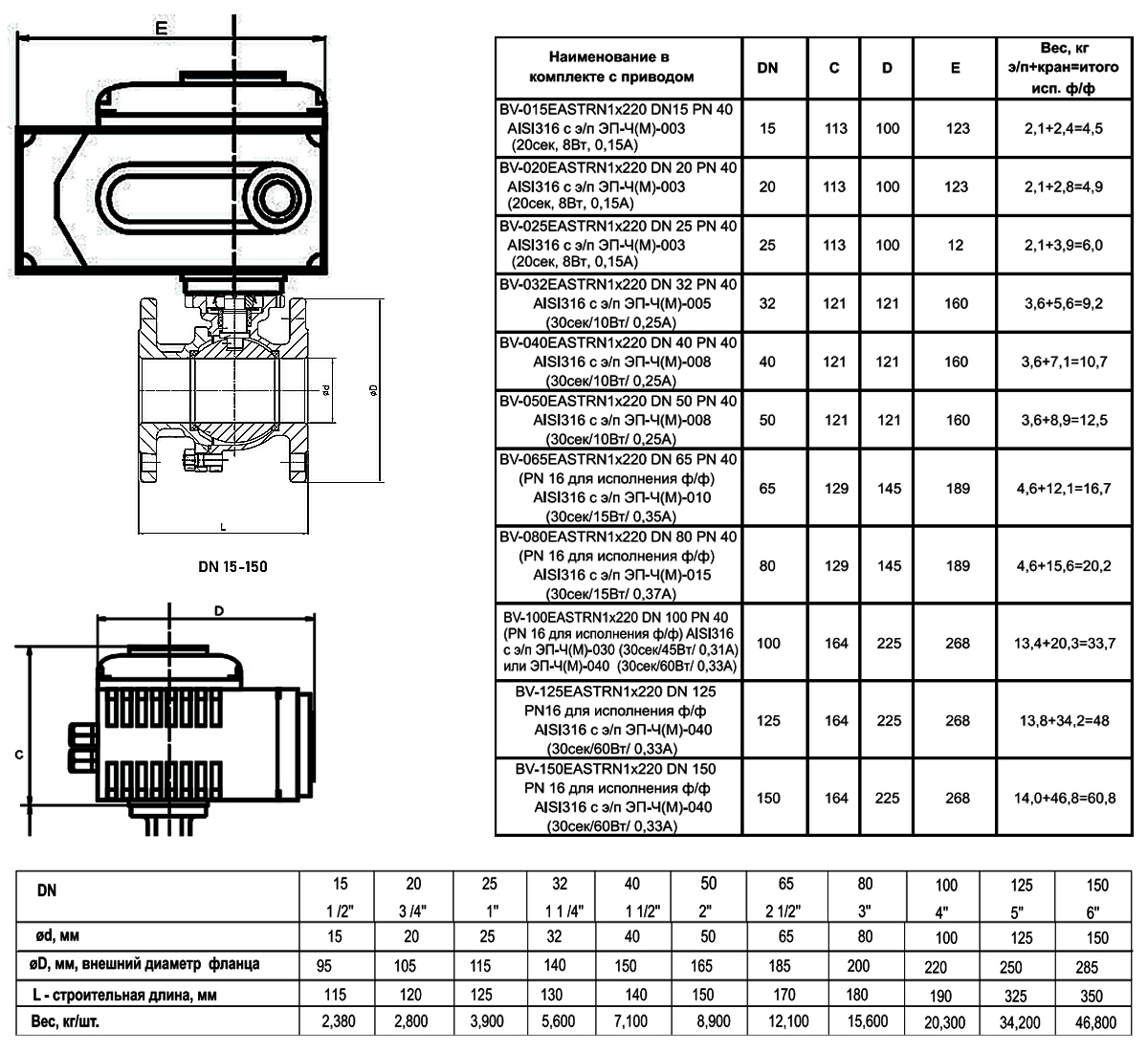 Кран шаровой ABRA BV-41 EASTRN DN 150 PN 16 с электроприводом нержавеющая сталь