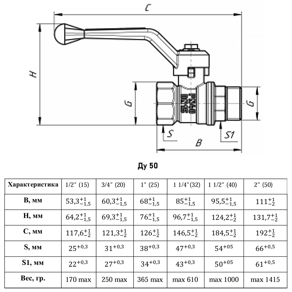 Кран шаровый VALFEX DELTA PRO VF.215 ВР-НР 2" Ду 50 Ру 25 латунный