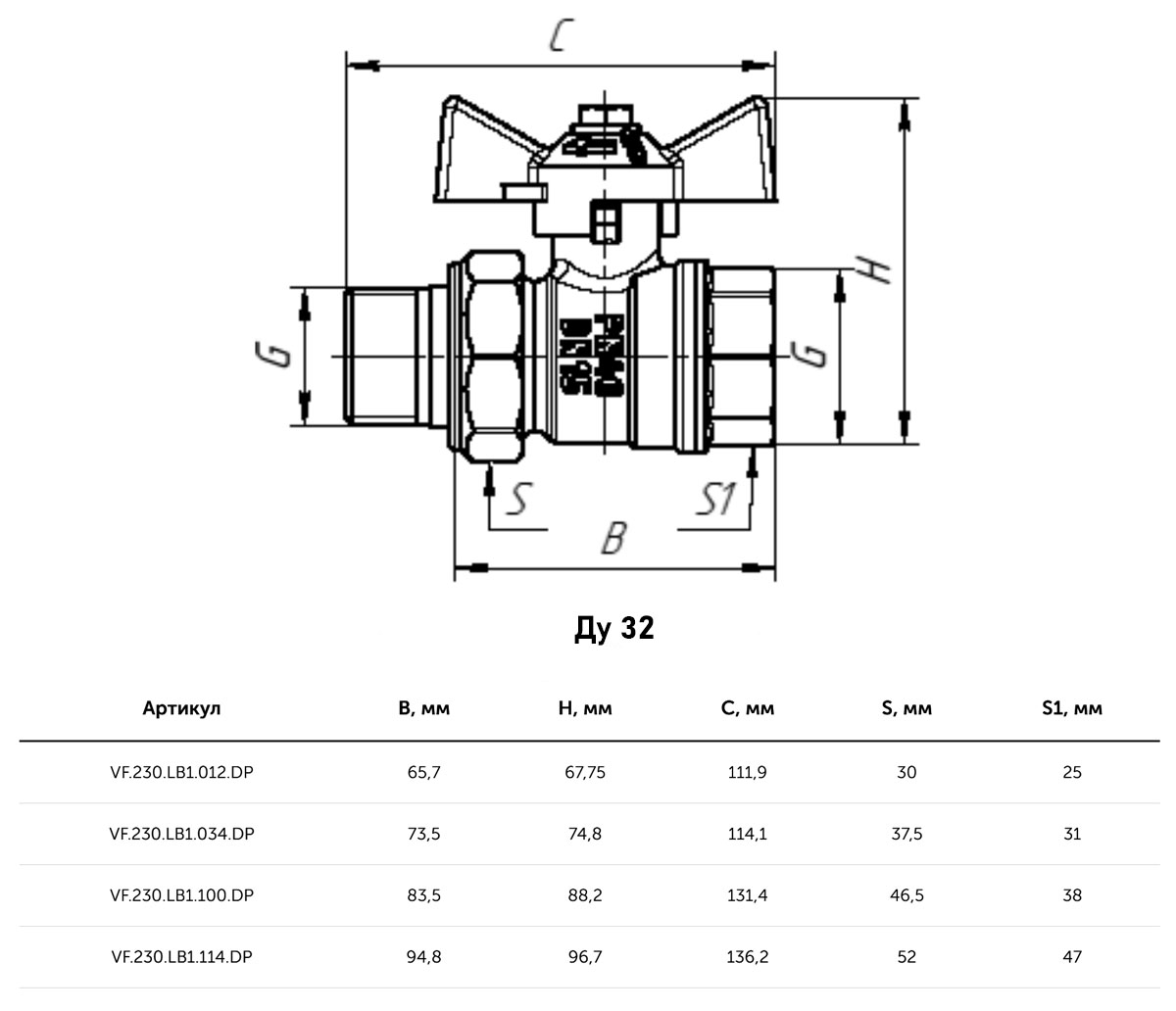 Кран шаровый VALFEX DELTA PRO VF.230 ВР-НР 1 1/4" Ду 32 Ру 40 с американкой латунный