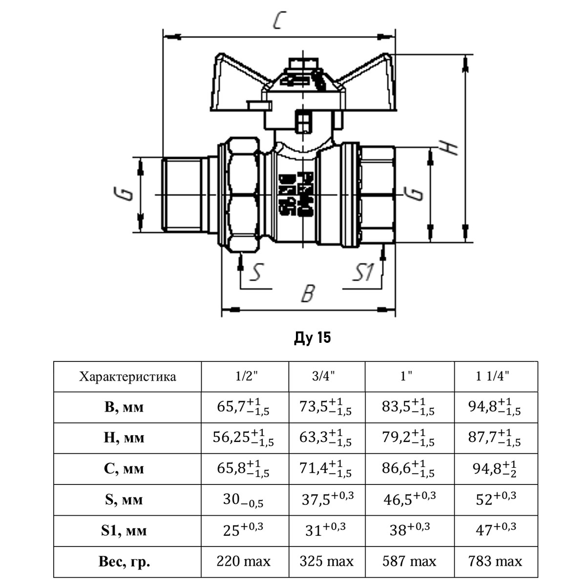 Кран шаровый VALFEX STANDART VF.230 ВР-НР 1/2" Ду 15 Ру 40 с американкой латунный