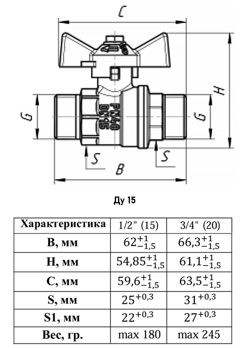 Кран шаровый VALFEX STANDART VF.270 НР 1/2" Ду 15 Ру 40 газовый латунный