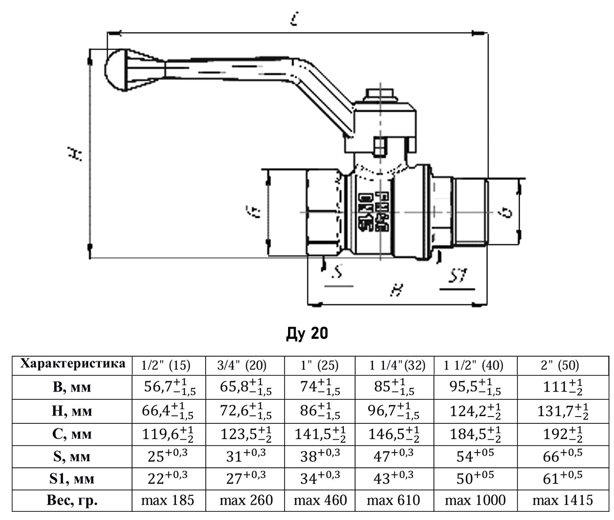 Кран шаровый VALFEX STANDART VF.272 ВР-НР 3/4" Ду 20 Ру 40 газовый латунный