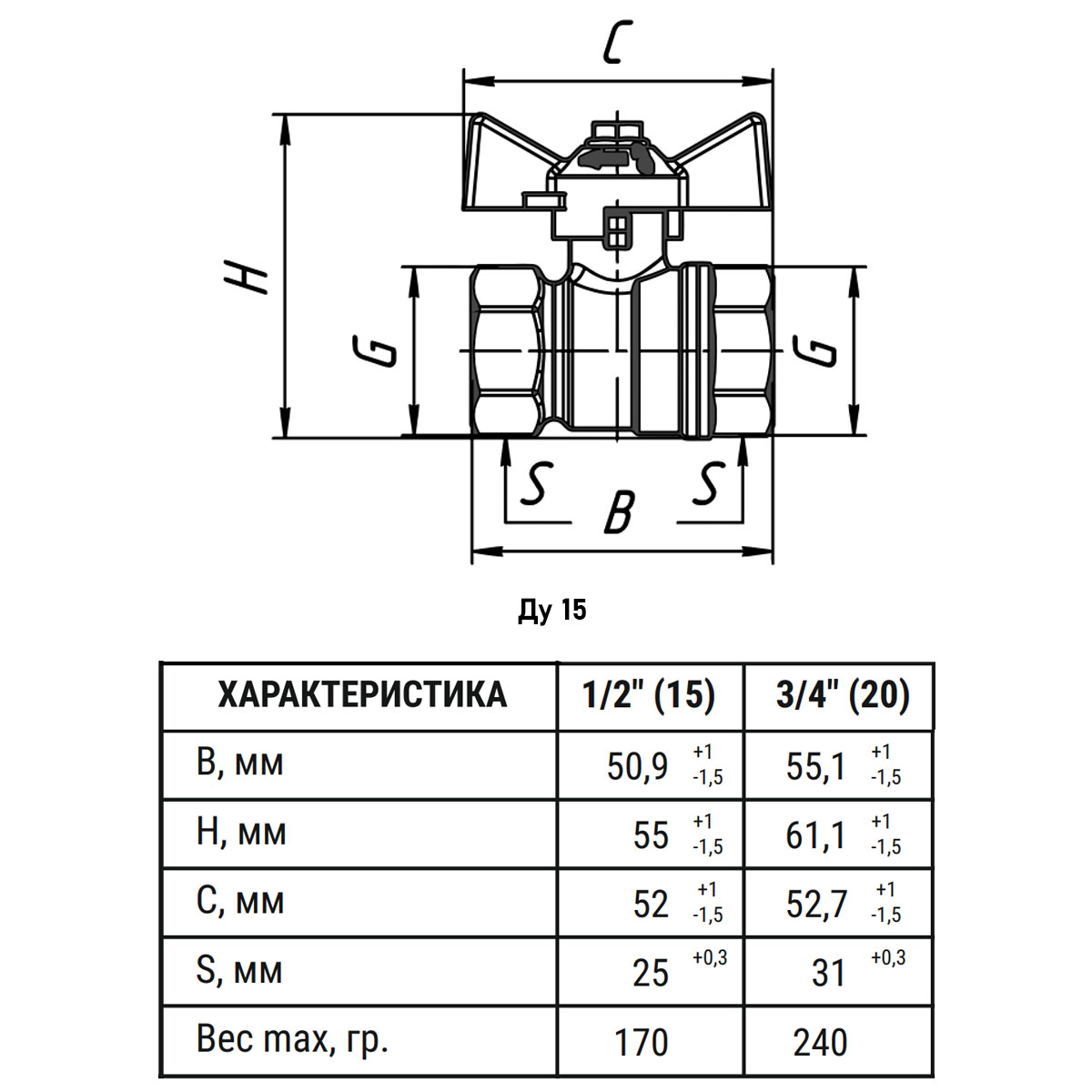 Кран шаровый VALFEX VF.217 ВР 1/2" Ду 15 Ру 40 STANDART N/P латунный