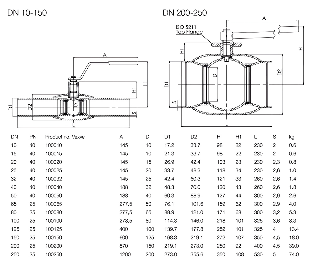Кран шаровой Vexve 100010 DN 10 PN 40 стальной стандартнопроходный под приварку для жидкости, ручка-рычаг