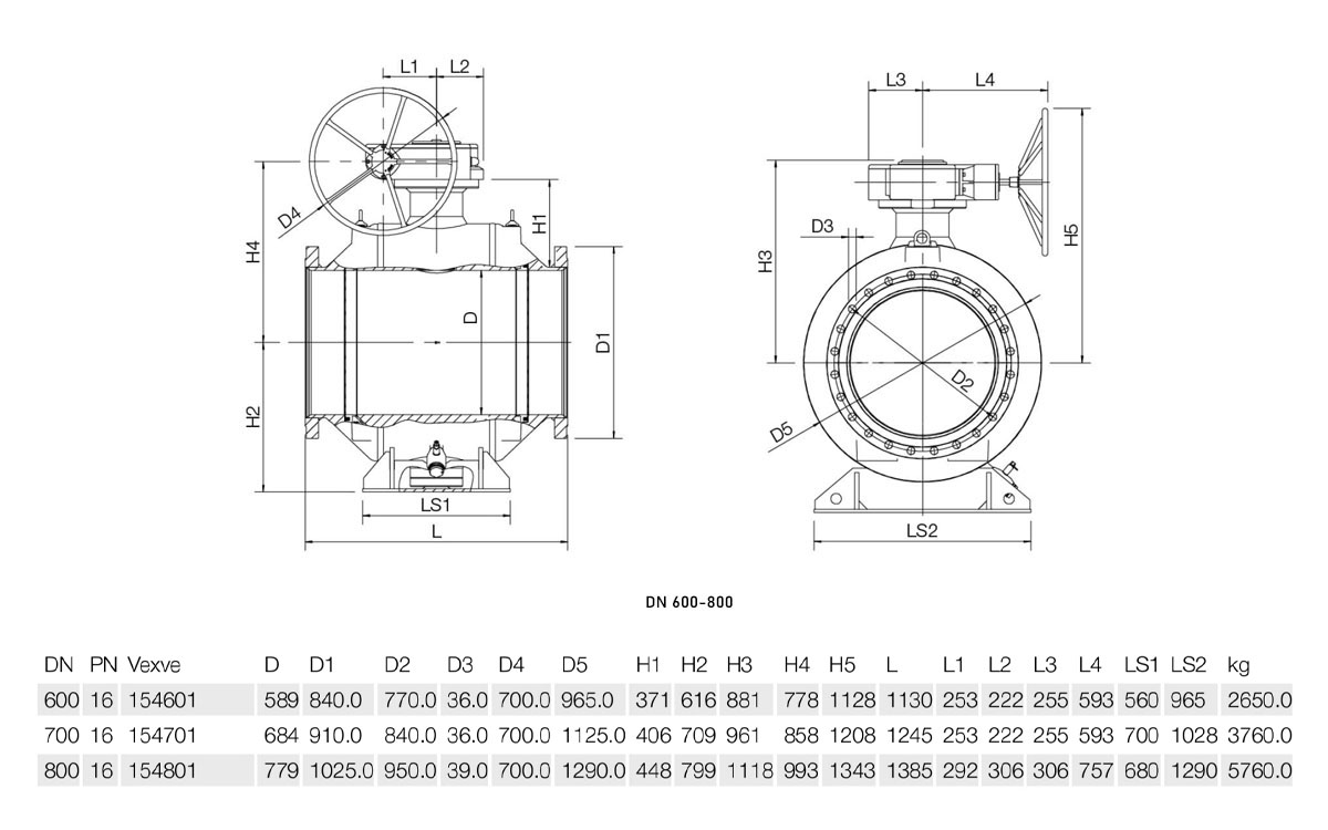 Кран шаровой Vexve 154xx1600 DN 600 стальной полнопроходный под приварку для жидкости, ручка-рычаг