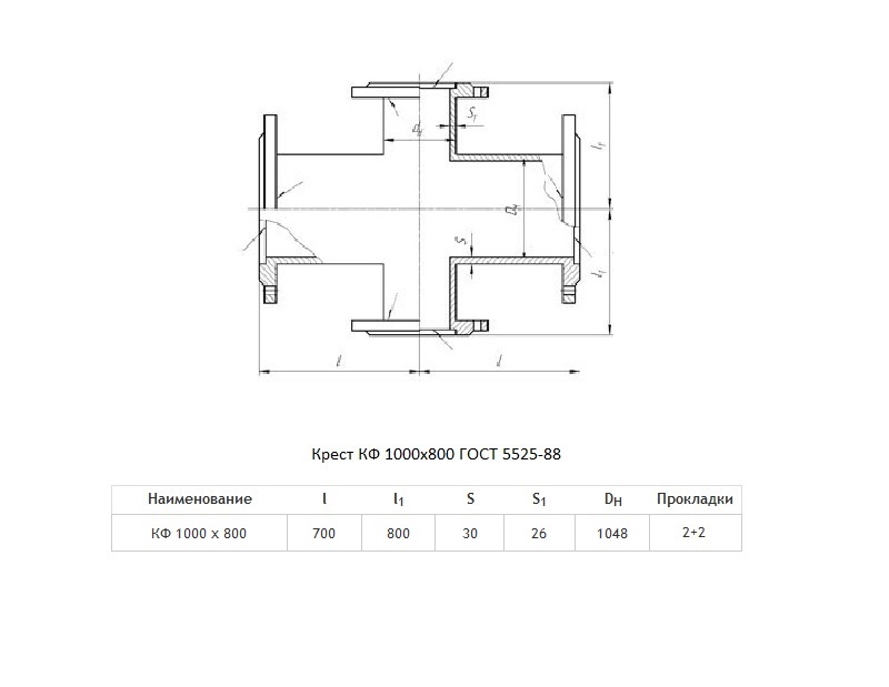 Крест КФ Ду 1000х800 ВЧШГ ГОСТ 5525-88 чугунный фланцевый