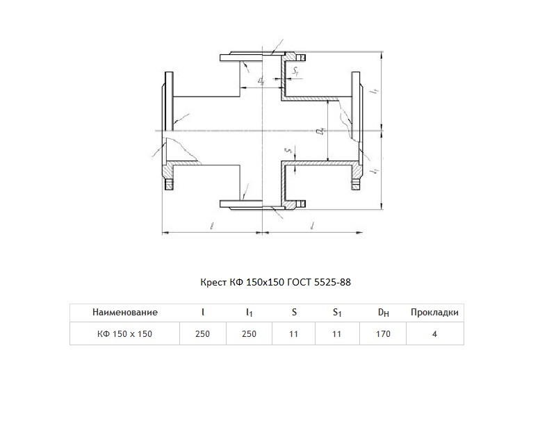 Крест КФ Ду 150х150 ВЧШГ ГОСТ 5525-88 чугунный фланцевый