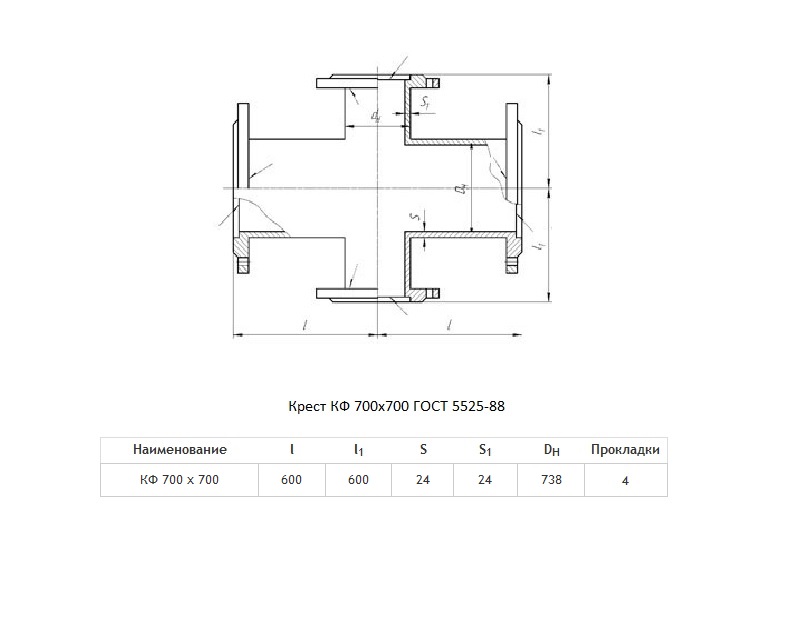 Крест КФ Ду 700х700 ВЧШГ ГОСТ 5525-88 чугунный фланцевый